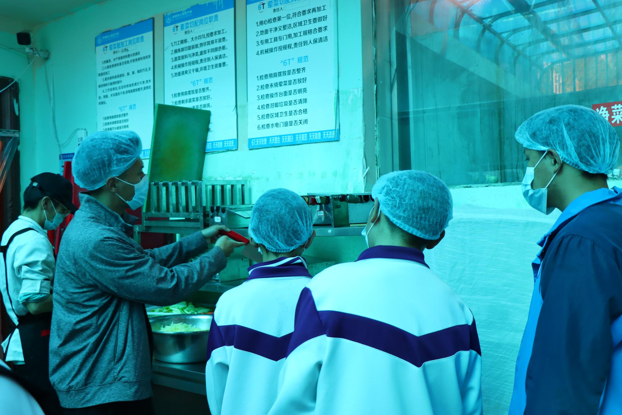 胡海涛老师在带领学生参观的过程中详细介绍了食品安全知识、食品制作流程、设备设施及餐具清洗消毒制度、留样制度、教师检查陪餐制度。同学们在看到食堂严格、科学的监督和管理制度,以及食材生熟分切、分类、分人处理,厨师在干净明亮的厨房烹饪美食,感受每一份营养美味的餐食都凝聚着后厨人员的辛勤劳动,大家纷纷表示要珍惜粮食,并向其他同学如实讲述参观情况,倡导同学们树立厉行节约、珍惜粮食的意识。