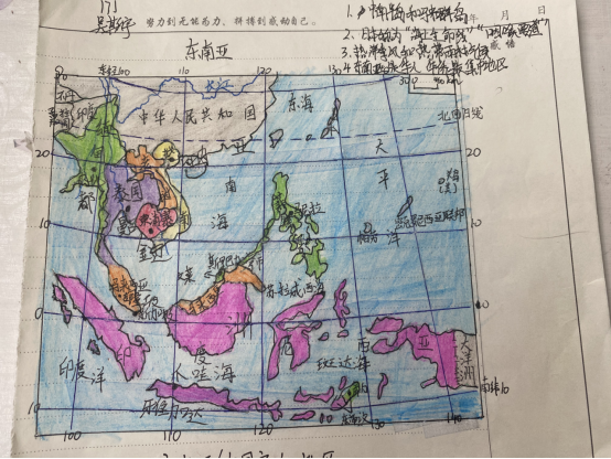 为了更好复习地理知识,培养学生区域认知能力,同时更好落实“双减”工作,云南长水实验中学呈贡校区初二年级举行了手绘地图比赛。此次比赛学生可以自主绘制不同空间尺度的区域,包括大洲、地区、国家、我国省级行政区,使得学生能够从地理位置的角度认识区域,建立知识框架。下面我们就来欣赏一下,同学们的作品吧!