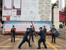 新学期,新要求。为有效预防、及时控制和消除校园重大突发事件的危害保障师生身体健康与生命安全,维护学校正常的教育教学秩序,全面提高应对恐怖和暴力能力,贯彻“安全第一,预防为主”的方针。2022年8月25日,云南长水实验中学呈贡校区呈贡校区物业中心张健老师组织安保人员进行开展反恐防暴演练。