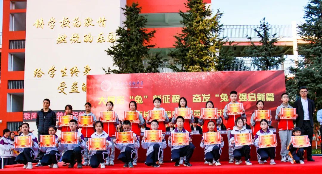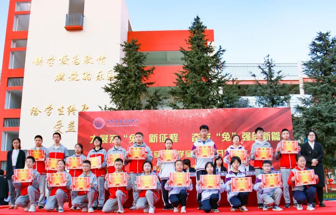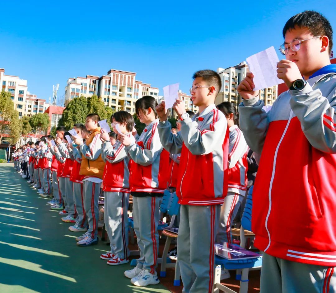 典礼最后在同学们慷慨激昂的歌声中接近了尾声,“少年智则国智,少年强则国强,少年强则国强......”这声声歌声,穿透云霄,浸透着多少学生的豪言壮志。