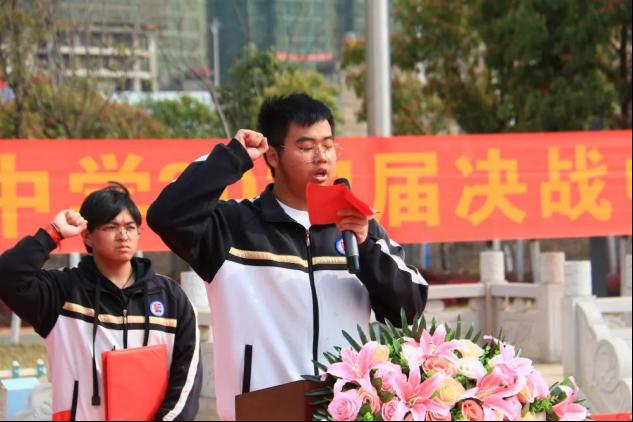 李毅成同学带领初三、高三学子进行冲刺宣誓