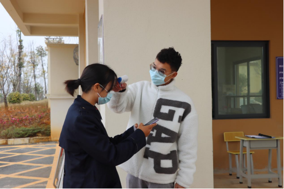 值班老师引导该同学进行现场留观,进行体温复测,并就中高风险地区旅居史、身体情况等进行询问登记。值班老师逐级上报信息。