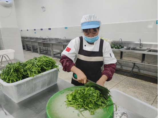 提前制定营养丰富、品种多样的菜谱,各色时蔬搭配新鲜的肉类,通过严格规范的洗捡、切配流程,结合食堂大师傅精心烹饪,制作而成的色香味俱佳的菜品让人心生欢喜、食指大动。