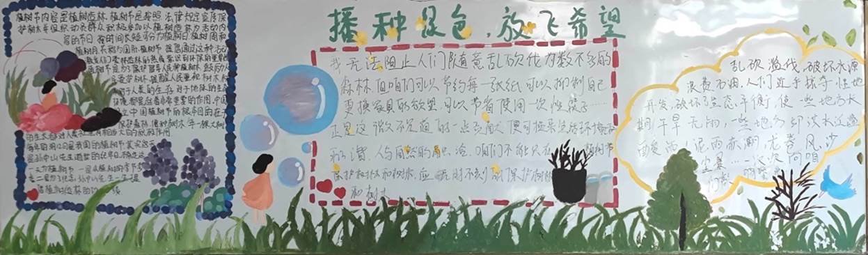 为增强环保知识,提高自身素质,树立学生爱护树木、保护环境的健康意识,我校初中部开展了以“播种绿色 放飞希望”为主题的黑板报评比活动。