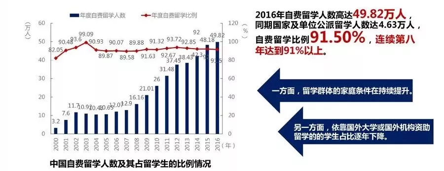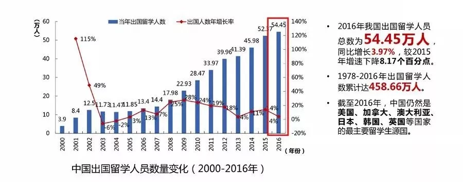 关于留学A new survey published by the bank shows that 42% of parents would consider sending their kids abroad for college, up from 35% in 2016.