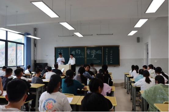 内务整理完毕,同学们依依不舍地道别了父母后,前往教室,开始了高中生涯的首次班会课。课上,班主任与同学们都进行了自我介绍,加深了师生之间的印象,班主任向同学们介绍了未来一周的校园生活安排。