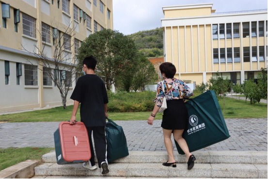 在家长的陪同下,同学们领取崭新的行李及生活用品,去往宽敞的宿舍。